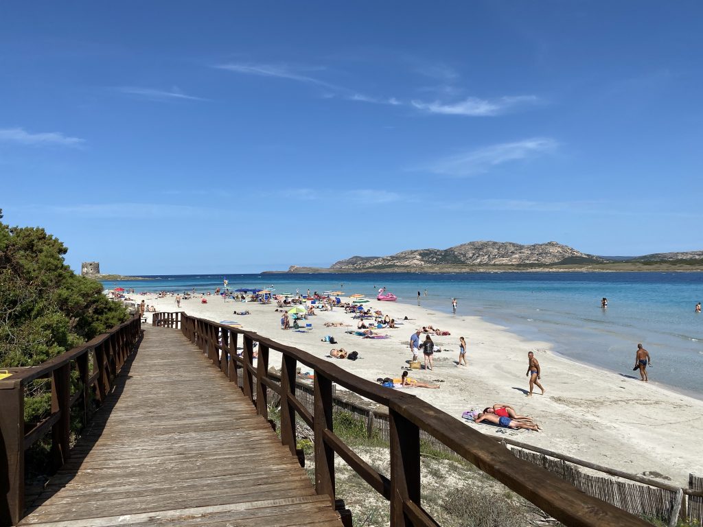 Przedstawiana jako rajski zakątek, którego nie powstydziłaby się Tajlandia czy Indonezja, Spiaggia della Pelosa jest malutką plażą położoną w północnej części Sardynii. Woda faktycznie ma kolor turkusowy, piasek jest rzeczywiście jasny, drobny, a woda jest naprawdę zimna. Niewątpliwie jest to urokliwe miejsce i pewnie właśnie z tego powodu w sezonie nie sposób wcisnąć tutaj nawet szpilkę. Po sezonie turystów jest i tak sporo, ale nie ma problemu z zaparkowaniem ani znalezieniem kawałka piasku dla siebie.
